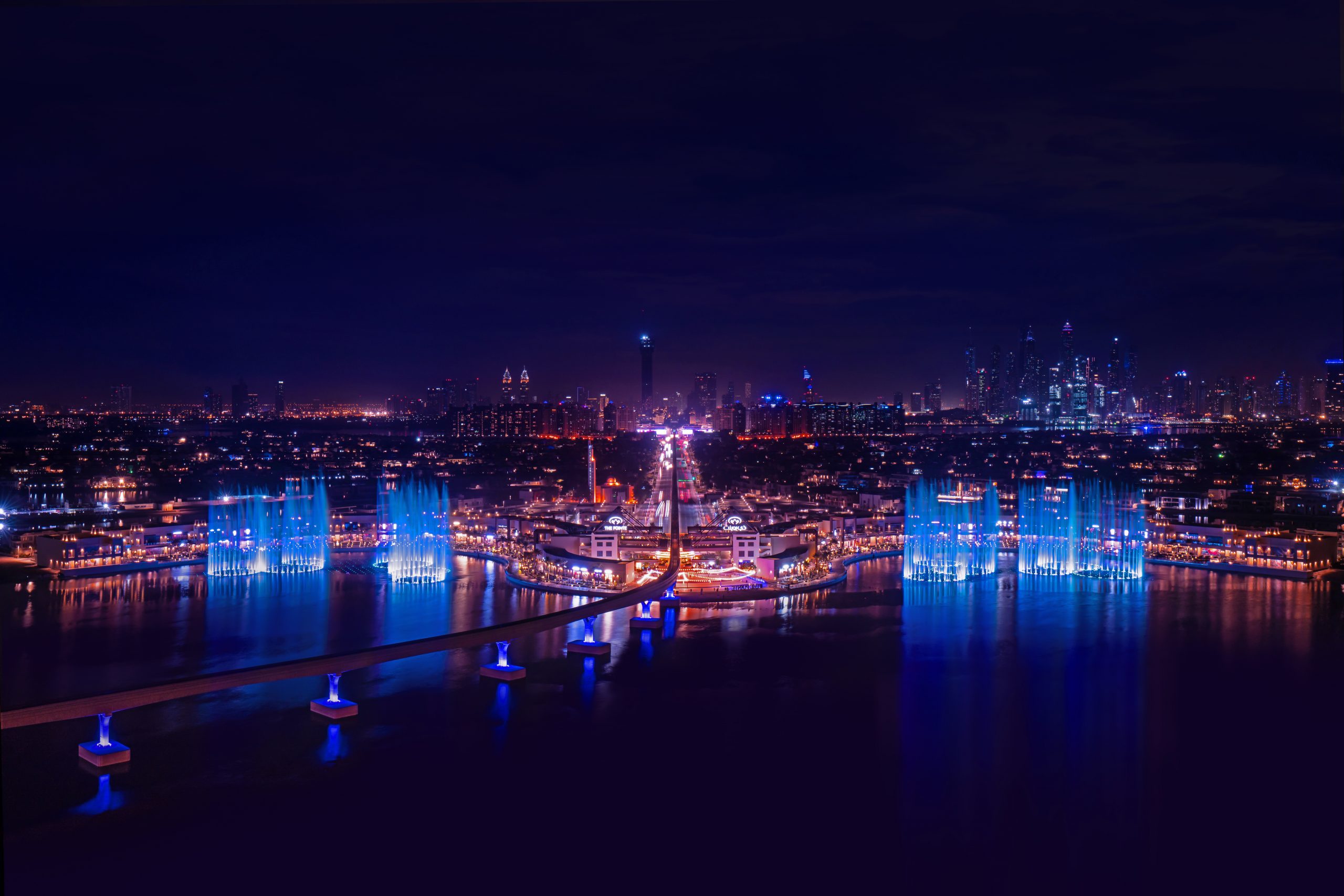 Fântâna are o suprafață de 14.366 metri pătrați și se va ridica la o înălțime de 105 metri, luminată cu mai mult de 3.000 de becuri LED. Este singura fântână multicoloră din Dubai. În ziua evenimentului de inaugurare, vizitatorii The Pointe sunt invitați să se bucure de festivități pe durata întregii zile. De la ora 16.00 vor avea loc evenimente cu DJ-i, show-uri de dans, artificii și multe altele. Omar Khoory, Managing Director, Nakheel Malls, a spus: “Nakheel Malls este onorat să inaugureze The Palm Fountain, o celebrare a rezistenței Dubai-ului și o piatră pusă la temelia extinderii portofoliului de atracții ale Palm Jumeirah. Ca pionieri ai destinațiilor în Dubai, inaugurarea The Palm Fountain este dovada implicării noastre în a susține retailerii și modul în care forțăm limitele pentru a oferi clienților nostri experiențe unice.” Ahmed Al Khaja, CEO of Dubai Festivals and Retail Establishment (DFRE): “The Palm Fountain este un plus pe lista celor mai faimoase repere la nivel mondial ale Dubai și, cu siguranță, va fi o atracție pentru localnici și pentru turiști. Inaugurarea întărește statutul Dubai de loc pe care trebuie să îl vizitezi.”