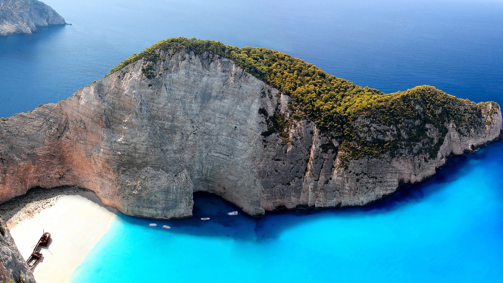 Supranumită și Golful Naufragiului, această plajă paradisiacă este amplasată la poalele stâncilor insulei Zante din Grecia. Accesibilă doar cu barca, din portul Zakynthos, se află epava unei nave de contrabandist numită Panagiotis.