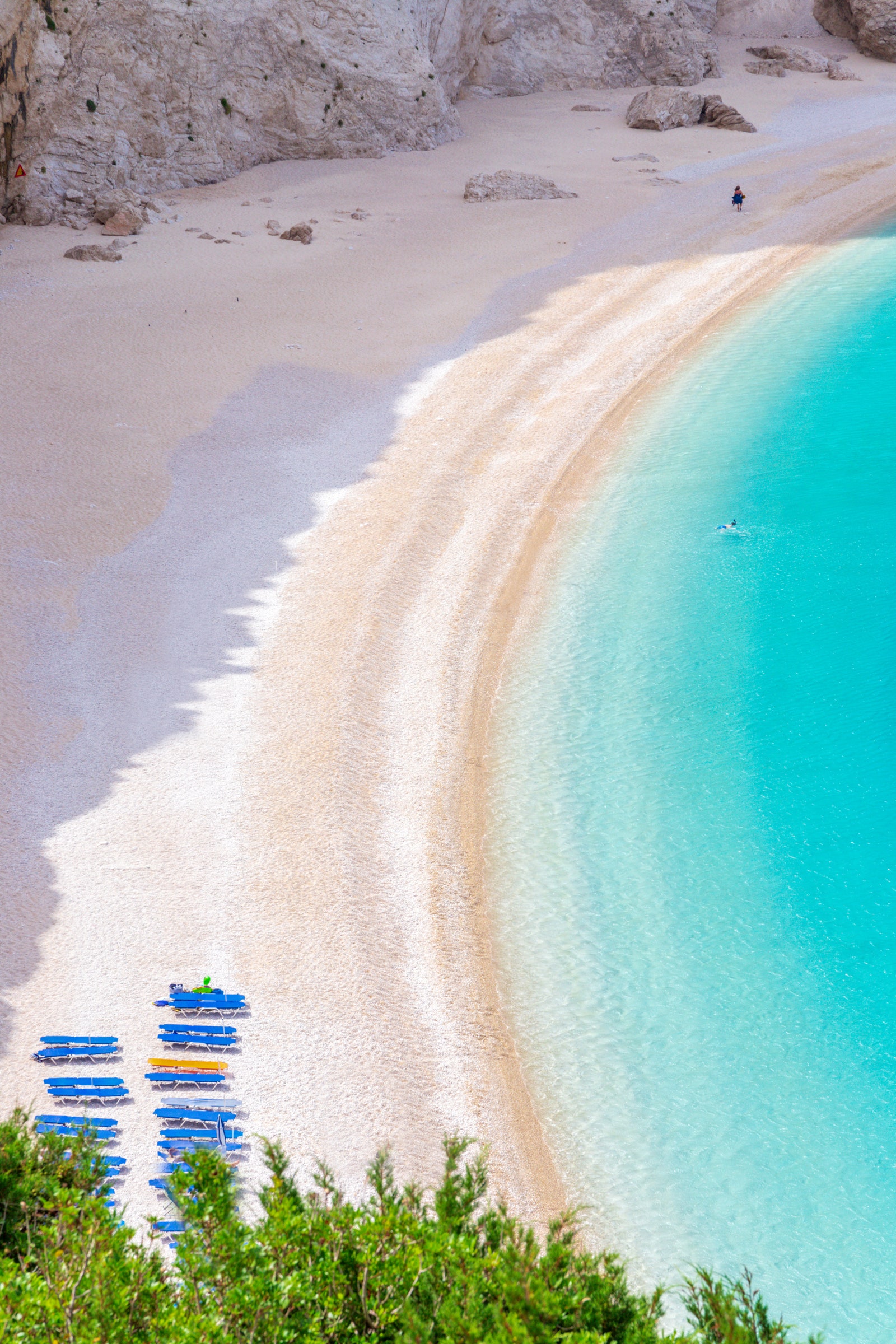 Această plajă paradisiacă este situată pe insula grecească Lefkada, cu fața spre valurile Mării Ionice. Aflată la poalele unei stânci, turiștii se adună acolo pentru nisipul său fin și apa turcoaz.