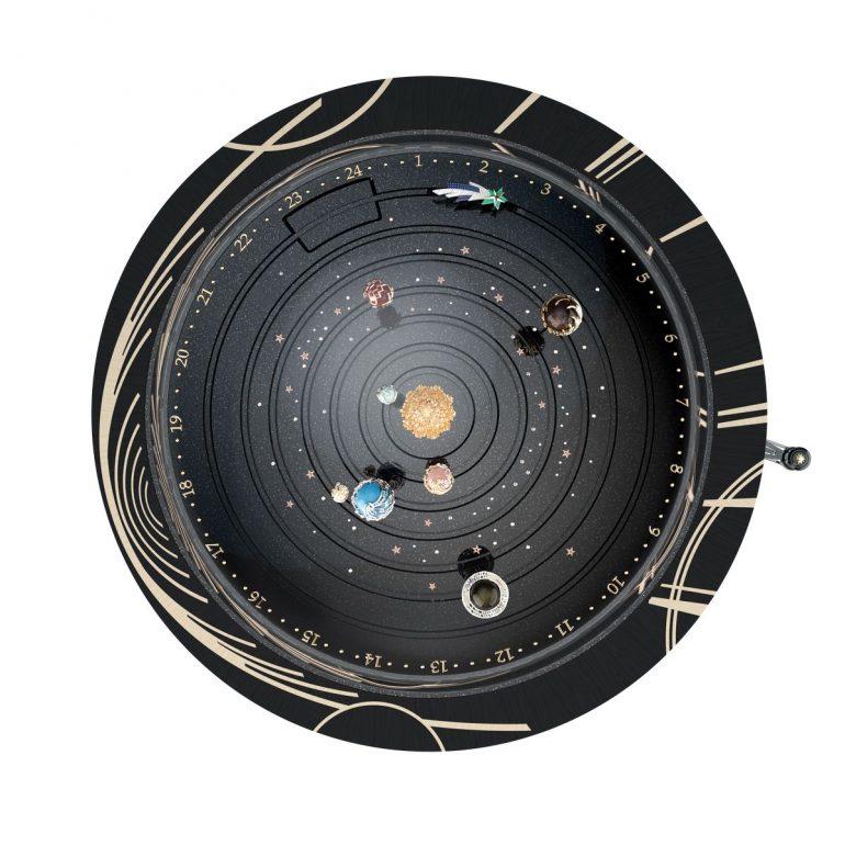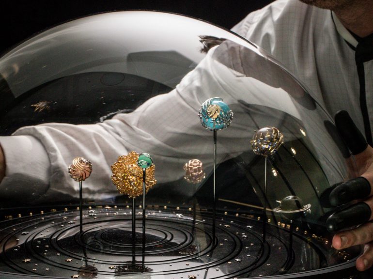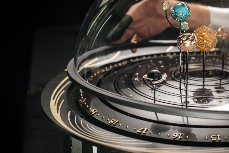 Mercur, Venus și Pământ – însoțiți de Lună, Marte, Jupiter și Saturn se angajează într-un balet coregrafat de balonuri. Arătând ca niște acadele minunate, îmbrăcate cu pietre prețioase, sincronizate, aceste planete se disting prin dimensiunile lor impresionante (50 cm înălțime și 66,5 cm diametru). Minunea nu este doar în frumusețea automatului Van Cleef & Arpels Planétarium, ci și în mecanismul acestuia.