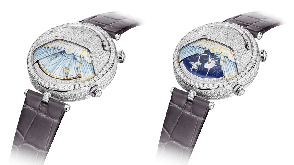 Doar trei piese sunt disponibile în prezent și, datorită expertizei minuțioase necesare pentru a crea fiecare piesă - doar mișcarea a fost realizată în curs de șapte ani - doritoare vor fi probabil multe. Acesta combină un disc de cutie muzicală cu o funcție mecanică de repetare a minutelor carillon; împreună, cântă muzică sincronizată cu o animație la cerere a balerinelor dansând printr-o deschidere de pe cadran. Dcorarea, pictarea și gravarea complicată a bijuteriilor - toate sunt realizate, desigur, de mână - și aveți atât o operă de artă mecanică, vizuală, cât și audibilă.