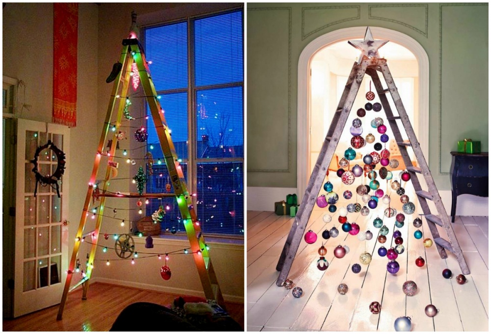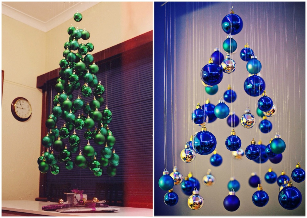 Agățați câteva ornamente de Crăciun, sub forma copacului. Acest design arată excelent dar cu siguranță neobișnuit.