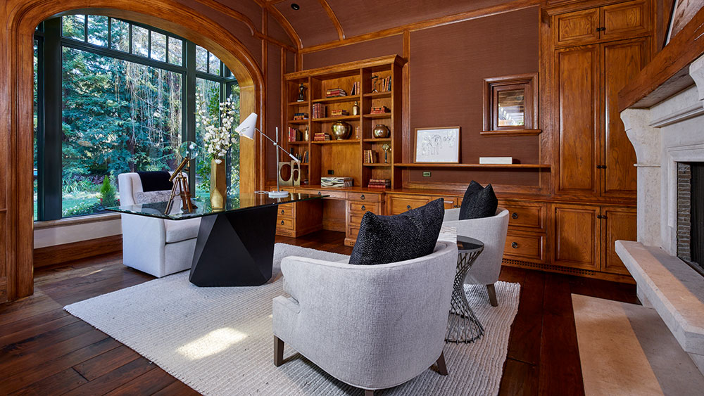 Un punct culminant al casei este tavanul uimitor, sculptat manual, pictat manual din camera pianului. A fost salvat dintr-o vilă venețiană în prăbușire. Dar, potrivit lui Dreyfus, tavanul nu a intrat într-unul din containere; a ieșit din dormitorul principal al ranchului original, modest, din anii 1950, care a fost demolat pentru a face loc acestei vile. Se pare că proprietarii anteriori l-au expediat din Italia după o vizită. „Întreaga cameră, cu podeaua de parchet din lemn ornamentat, candelabru uimitor și uși arcuite, a fost proiectată în jurul acelui tavan. Este cu adevărat uluitor”, mai spune agentul.