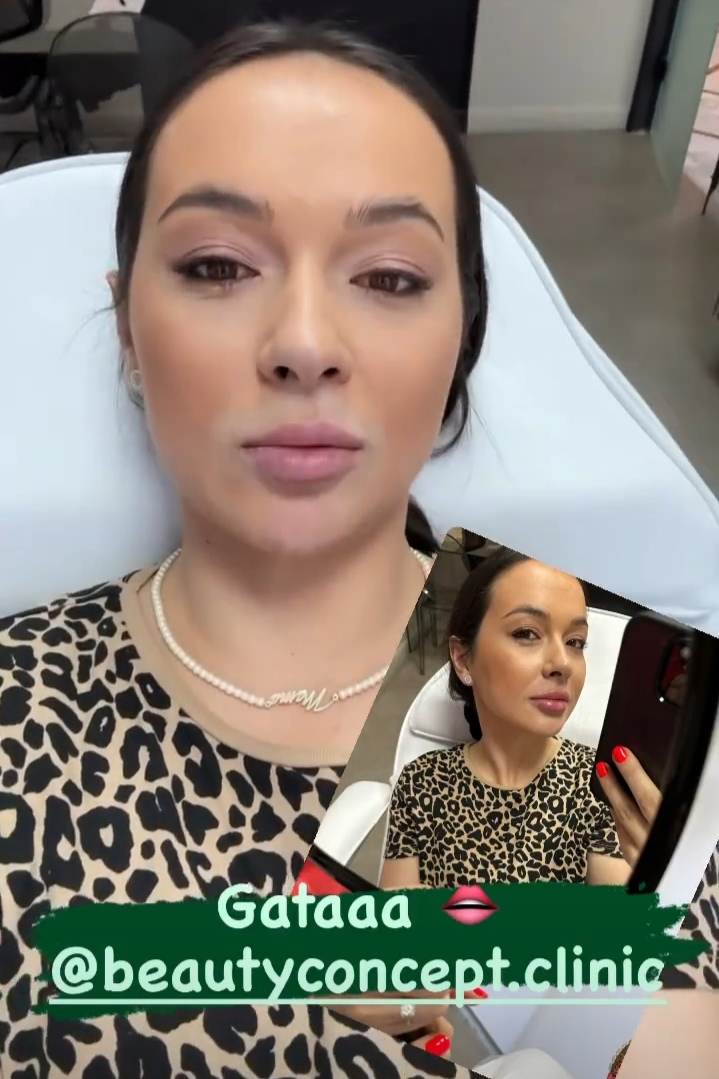 „Se vede că mi-am șters și rujul, și fondul de ten și așa sunt buzele mele”, a adăugat Vlăduța Lupău, iar în imagini se observă cum medicul estetician îi aplică crema anestezică, pentru ca vedeta să nu simtă durerea în timpul injectării.