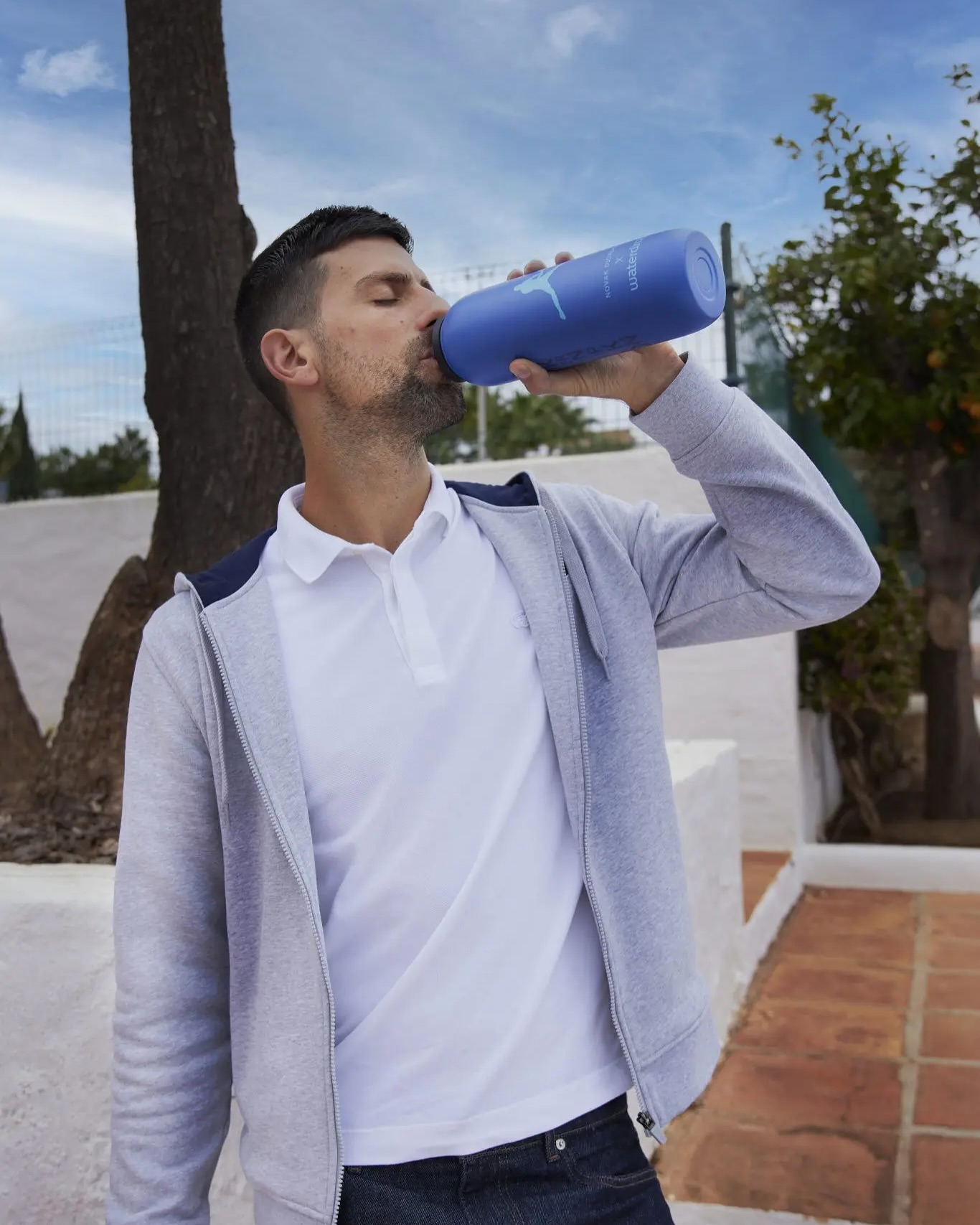 Influența lui Djokovic depășește lumea tenisului, astfel că termosurile multifuncționale din oțel inoxidabil „ascund” atât îndemnul „Hidratează-te ca un profesionist!”, dar și efortul comun de a proteja resursele planetei, în ton cu adoptarea unui stil de viață sănătos.