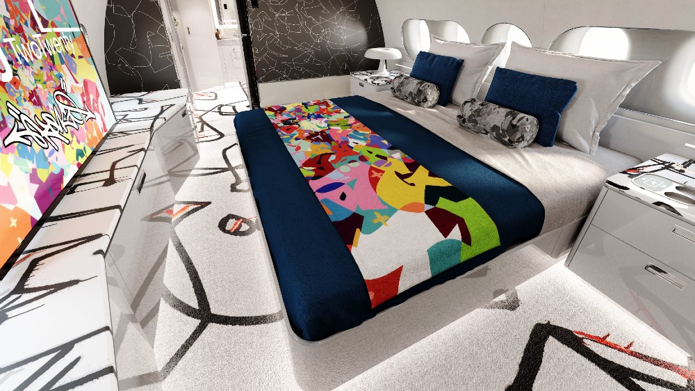 Artistul francez Cyril Kongo promite să transforme aspectul tradițional corporativ al majorității interioarelor business-jet, creând o cabină colorată, vibrantă, care poate fi personalizată pentru fiecare client. Airbus Corporate Jets (ACJ) a afișat o serie de fotografii care ar putea transforma - cel puțin pentru câțiva clienți - aspectul interiorului cu jet.